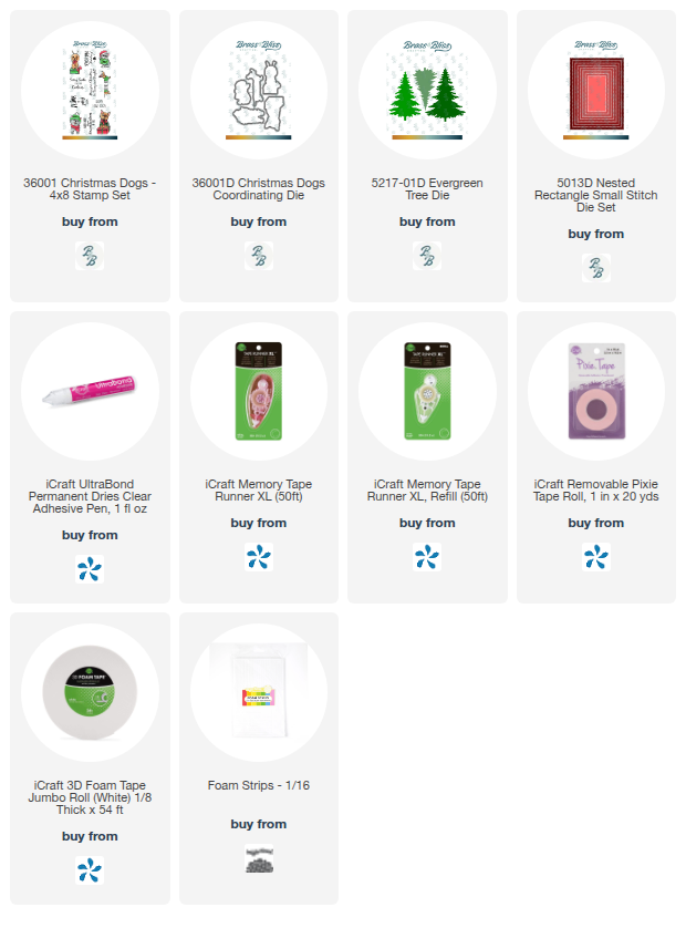 I'm using leftovers from other projects today including one of my favorite gel prints. The frame, pup and Merry Sentiment were extras and the snowflakes too and I cut the trees from a foiled gel print.